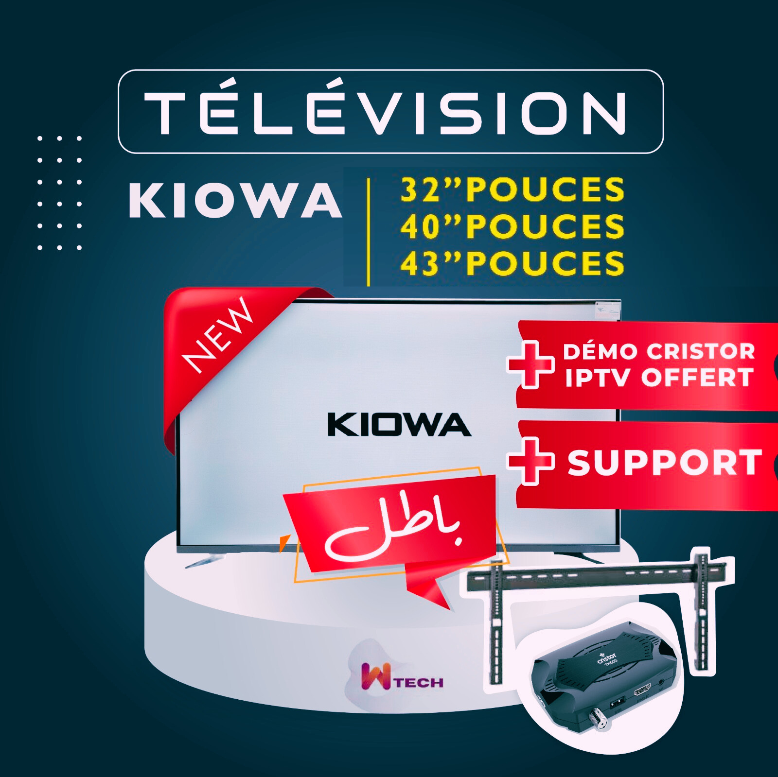 TELEVISION KIOWA 32 POUCES Avec DÉMO CRISTOR IPTV GRATUIT + SUPPORT TV GRATUIT